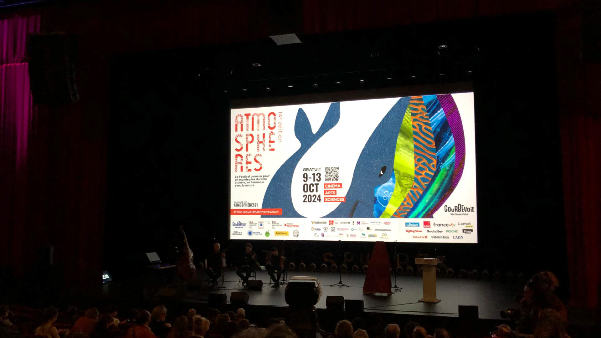"Festival pionnier dédié aux enjeux et solutions du développement durable, le Festival Atmosphères interroge le monde de demain à travers le cinéma, les arts et les sciences, depuis 14 ans." Cette 14e édition avait pour thème les océans.
