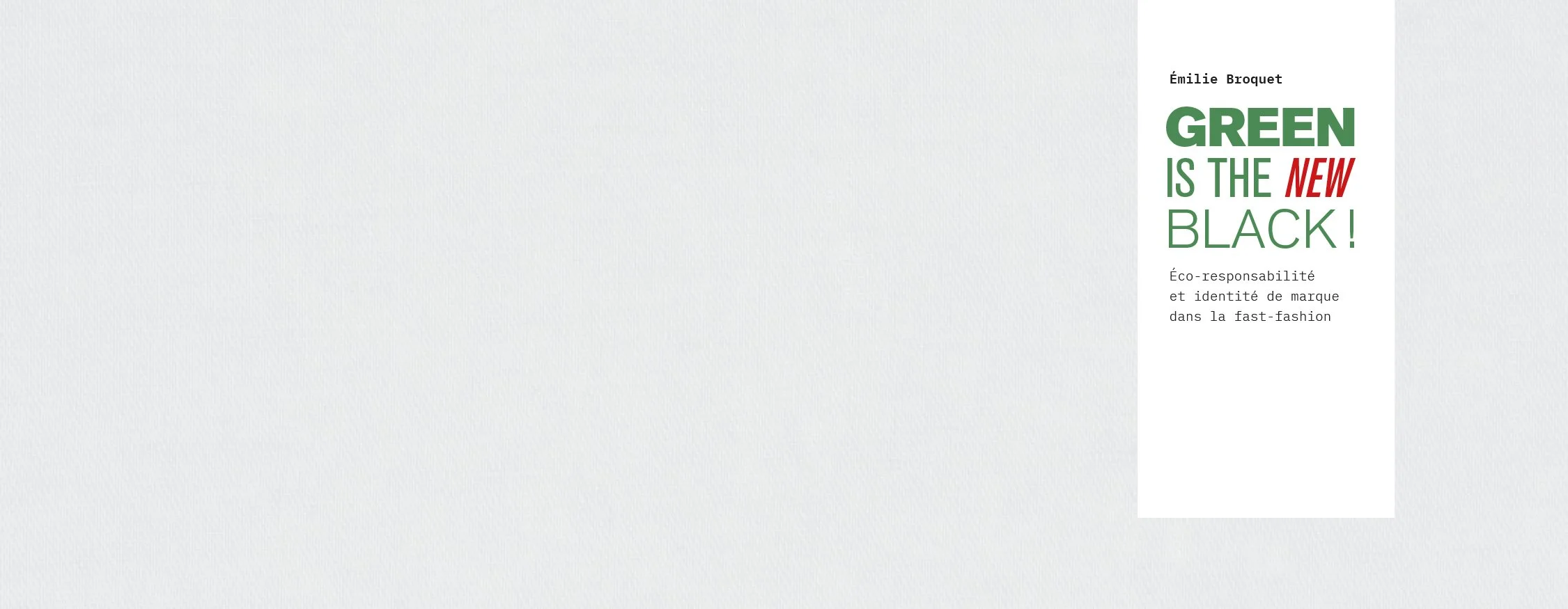 Alors que les préoccupations autour de l'environnement ne cessent d'augmenter, les marques tentent de répondre aux attentes sociétales qui y sont liées. Ce mémoire analyse en particulier les réponses de quelques grandes marques de la fast-fashion. Quels positionnements pour leurs marques filles, dernières nées d'une volonté de changement ? Quels récits et codes sont-ils utilisés pour évoquer cet engagement éco-responsable ?